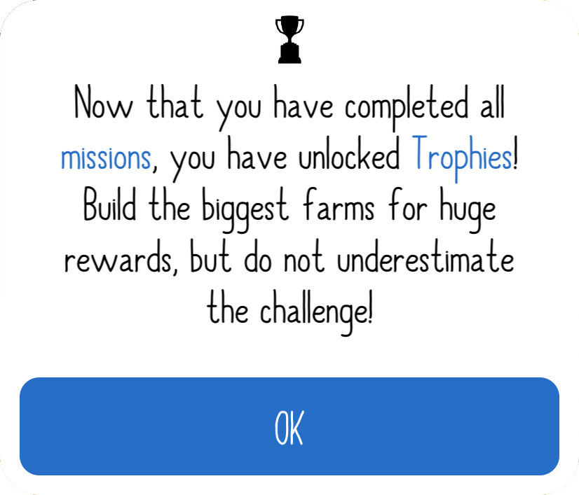 Trophies are chicken number milestones for each egg that gets unlocked when all Challenges have been completed.